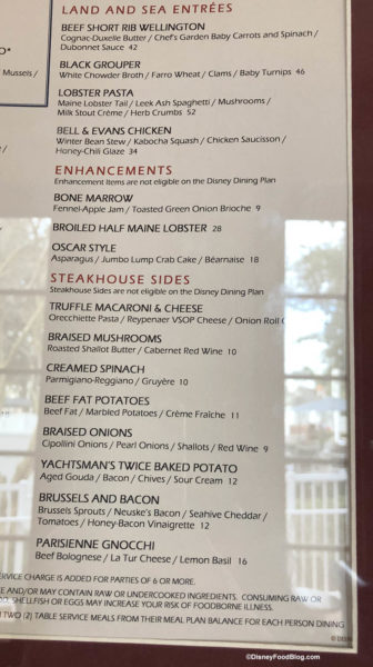 Recent updates to the menu at Yachtsman Steakhouse include some new appetizers, sides, and entrees. You’ll now find a Prime Beef Raviolo as an appetizer.