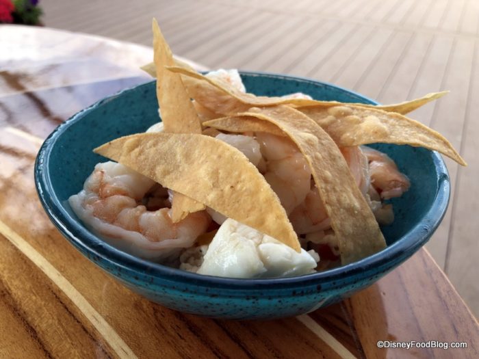 The Chilled Seafood Salad serves up conch, shrimp, and lump crab with bell peppers, cilantro, and lime dressing.
