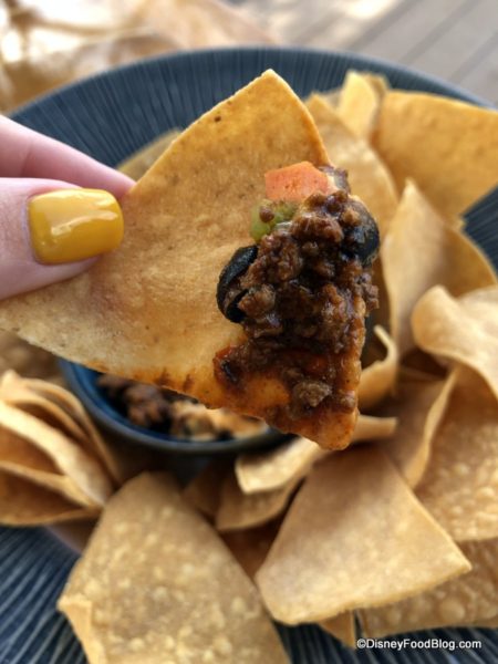 That said, the chili is good, but lacked any spice and could really benefit from having more creaminess from added cheese to be a great dip.