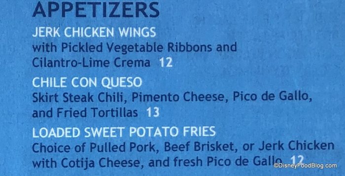 But today we’re here to check out the new food! From the Appetizers, we ordered the Chili Con Queso and the Loaded Sweet Potato Fries.