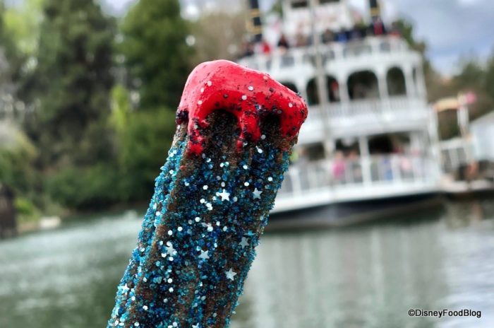 Churros are always a part of Disneyland celebrations, but they’re not all winners, unfortunately. The Fantasia Mickey Churro is a sight to behold, coated in bright blue and red sugar (with edible star glitter!). Under that sugar, it’s a standard chocolate churro, though, so if you worry about funky flavor combos, you’ll be happy with this one!