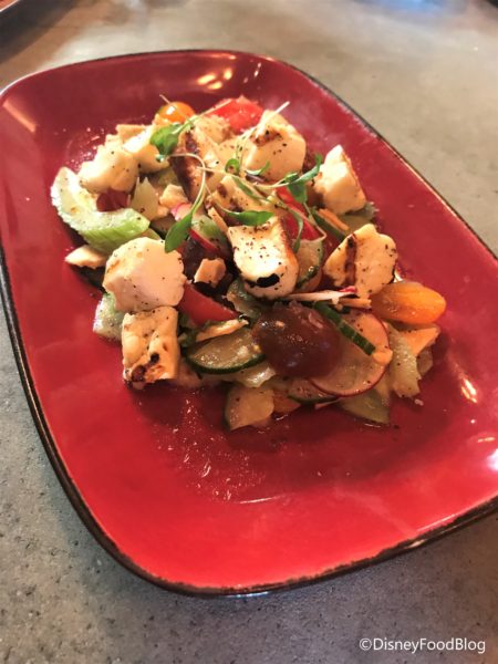As far as vegetarian options go, this is an excellent choice. It’s certainly a little different, and obviously much lighter, than other popular vegetarian dishes like pastas or pretzels. The salad was crisp and fresh, and the pita chips added an awesome crunch. The cheese itself doesn’t have a ton of flavor, if anything it’s a bit salty on its own. But paired with a marinated tomato and cucumber, it’s a refreshing dish when you’re in the mood for something lighter (vegetarian or not).