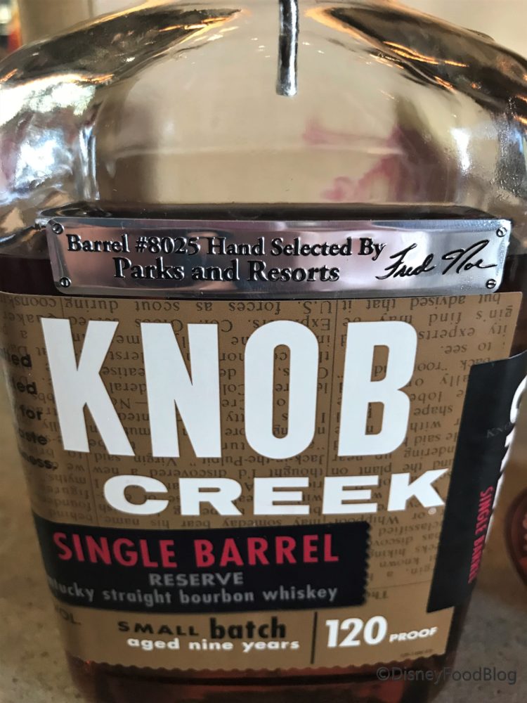 Next up, the Jock’s Old Fashioned. No you’re not seeing things, this glass is sliding sideways! This cocktail is made of Knob Creek Disney Select 120 Proof Bourbon, Cointreau Orange Liqueur, Aromatic Bitters, Orange Bitters, Simple Syrup, and Soda Water.