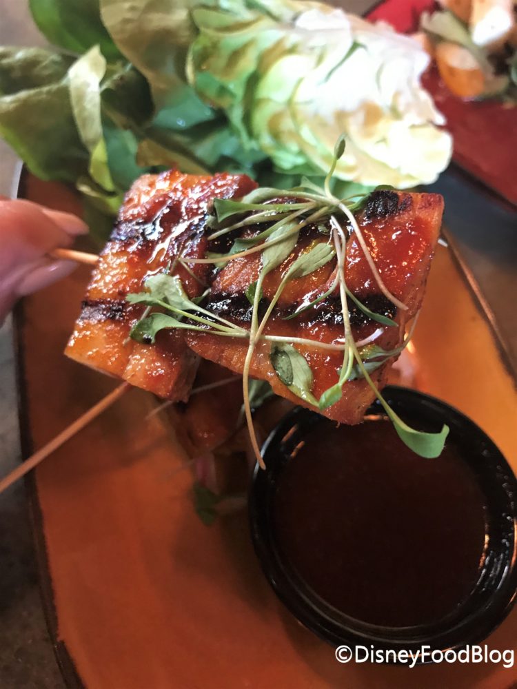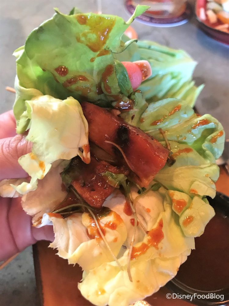 Lastly, we tried Chen’s BBQ Pork Skewers. This is Grilled Pork Belly in Gojuchang Pepper Sauce, and served with Pickled Vegetables, Cilantro, and Bibb Lettuce. It also comes with a spicy dipping sauce.