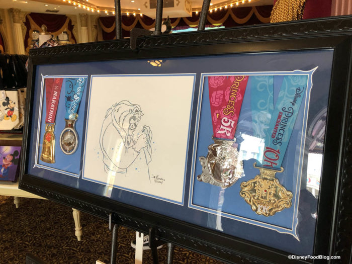 If you are running in the Disney Princess Half Marathon races this weekend and are looking for a way to display your finisher medals, Disney is ready to help! The Main Street Cinema Art Shop had two different framing options on display. Good luck to all of the runners this weekend! Be sure to check out all of the Disney Springs locations offering runners a discount this weekend!