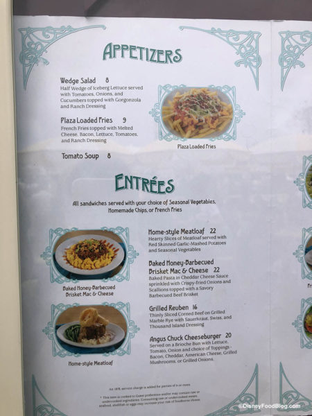 At the Plaza Restaurant tomato soup has been added to their menu as an appetizer, taking the place of the seasonal soup option. (FYI, the “seasonal soup” was usually tomato as well…Disney sometimes uses “seasonal soup” on menus at counter service restaurants and lower-priced table-service restaurants to give themselves the opportunity to serve something else if their regular option runs out.)