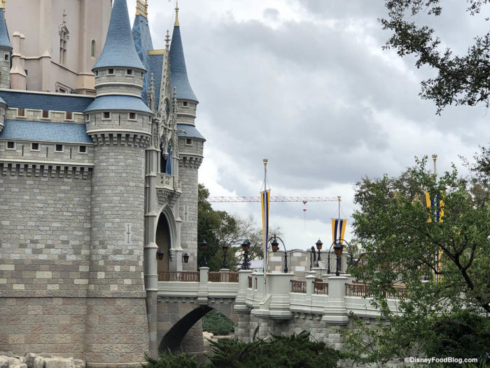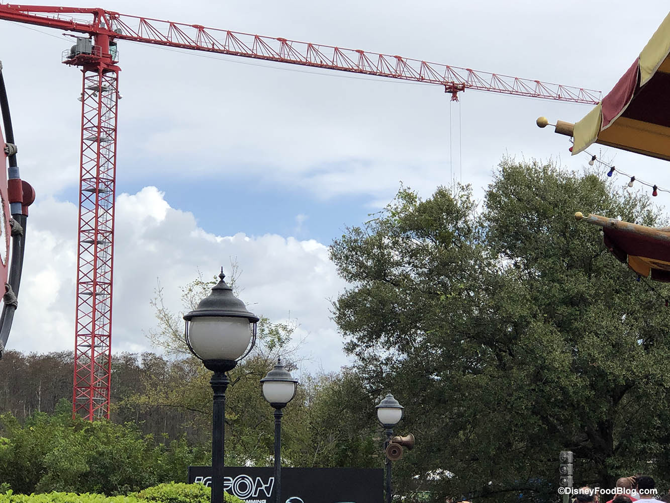 That tall red crane on the Tron construction site even popped up in our pictures taken in the hub of the park by Cinderella Castle.