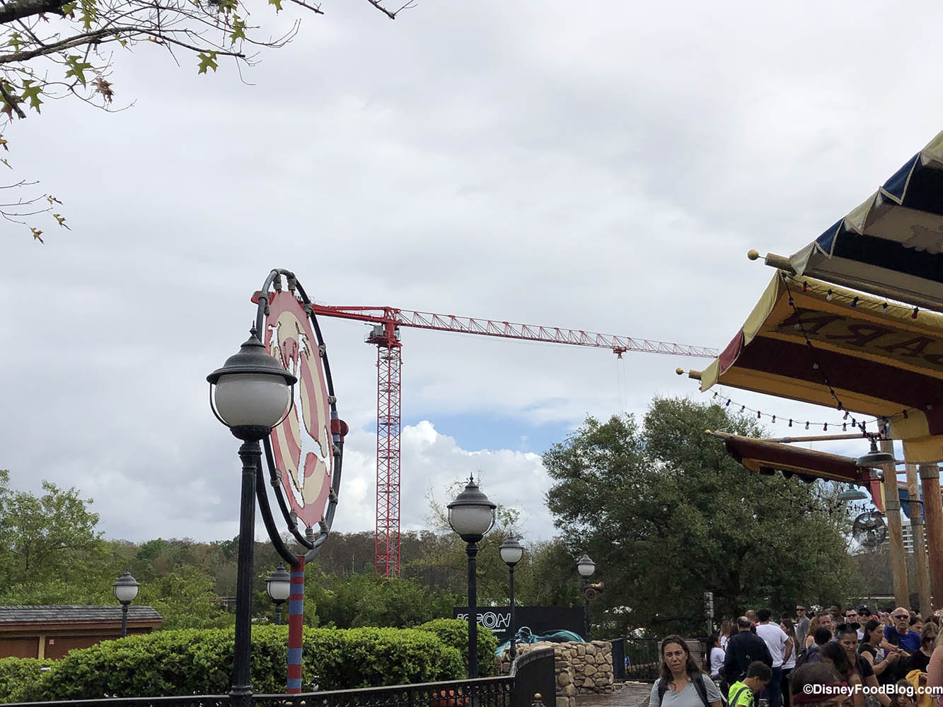 You will see signs of the construction, and this giant red crane, in Fanstasyland near The Barnstormer ride.