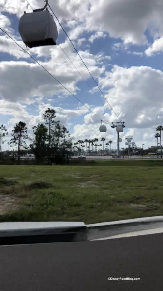 Disney World’s newest transportation option, the Disney Skyliner System, has been testing gondolas on the lines over the past couple of weeks. Now, it looks like they are testing the system at full capacity and speed near the Hollywood Studios Skyliner Station.