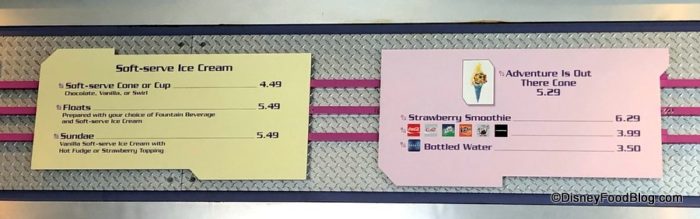 This new Up!-inspired cone joins the Hei Hei Cone and the Lost Princess Cone in the park as one of three new character and Disney film themed treats. It comes in at $5.29 (or a Disney Dining Plan snack credit) on Auntie’s Menu.