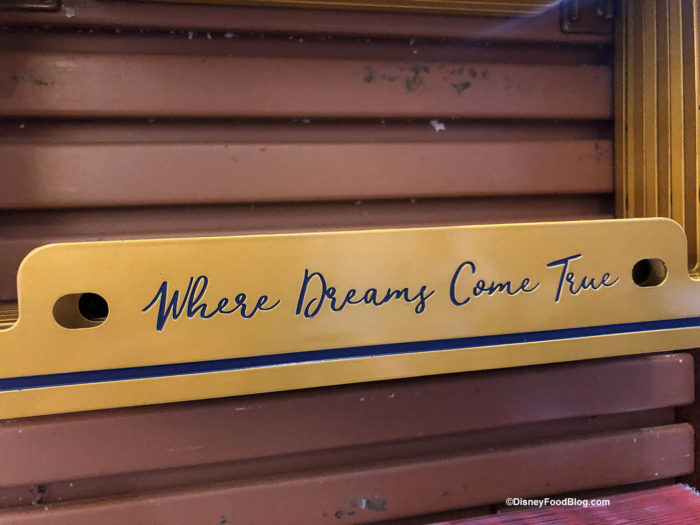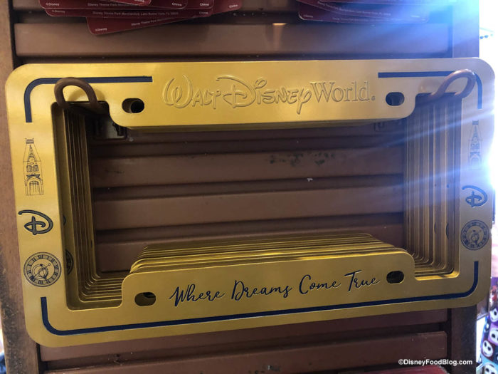 We saw this “Where Dreams Come True” license plate frame for the first time in the parks on this visit.