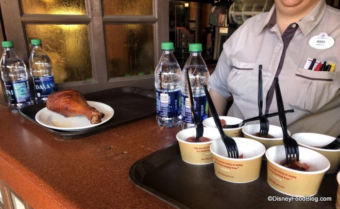 A stop at Tortuga Tavern includes a taste — and also some information — about another cult classic snack: the Jumbo Turkey Leg!