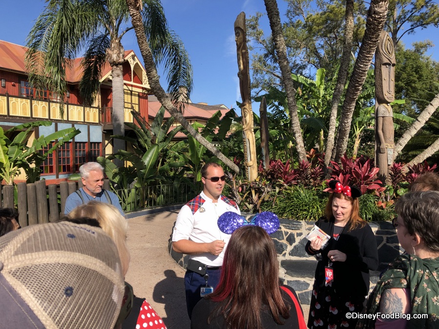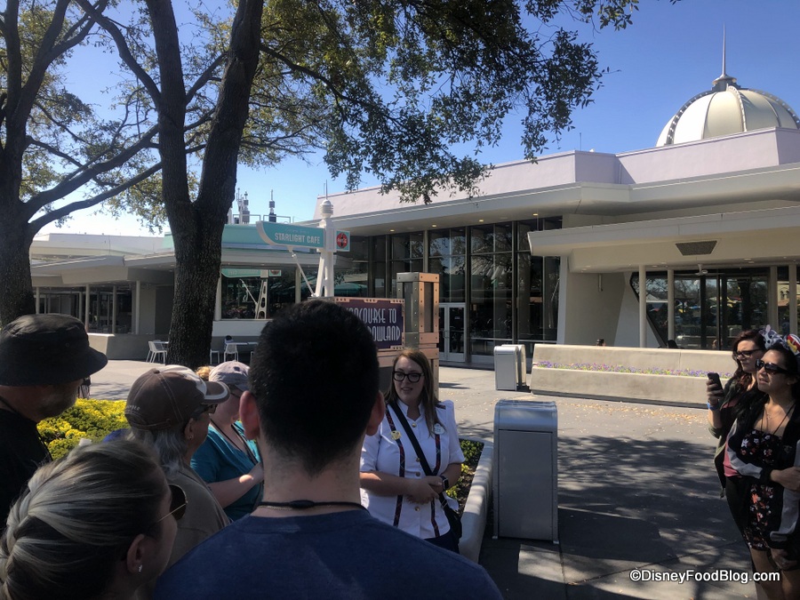 The official welcoming begins with two Cast Member Tour Guides sharing some favorite Disney food memories, recognizing how food continues to become more and more of an important part of a Disney vacation. (As we say here at the DFB, “food IS a theme park,” after all!)