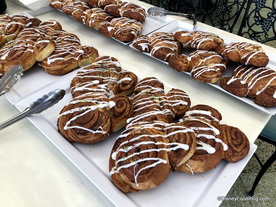 And Mickey Cinnamon Rolls are available, too! As of press time, these treats are dressed up in Mardi Gras colored sprinkles.