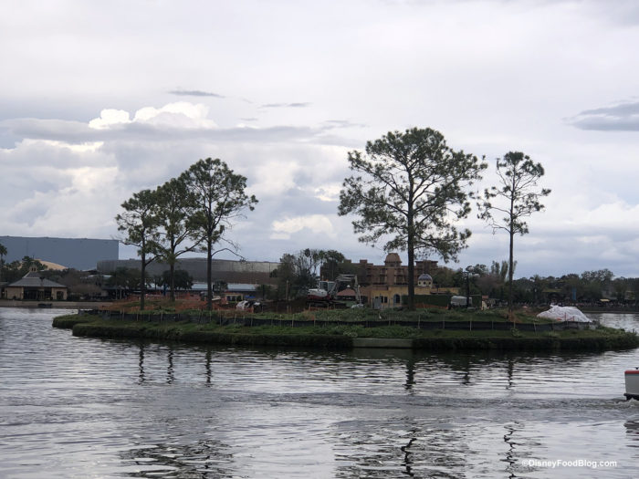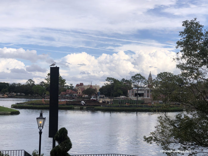 As if there isn’t enough construction going on, there’s even construction going on IN the World Showcase Lagoon! This is work to prepare for Epcot’s new nighttime spectacular, Epcot Forever.