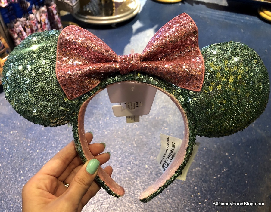 As we were admiring the Castle Ears, we were informed that these Sea Green Minnie Ears with a Pink bow had also just hit the shelves!