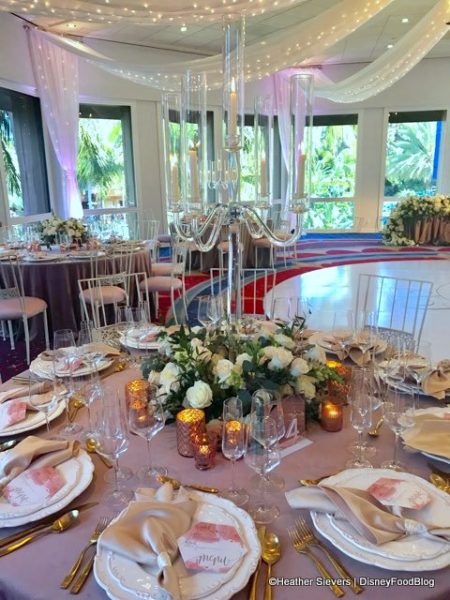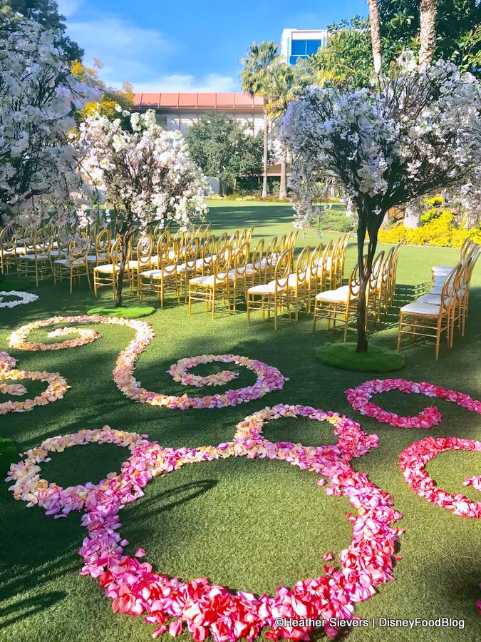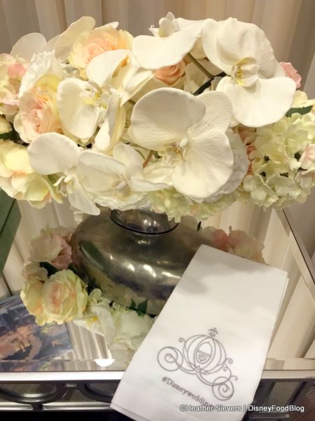 If you’ve ever daydreamed about a Disney wedding designed by Fairy Tale Weddings (or if you just like to gawk at the gorgeousness and cringe at the costs…), our Disneyland correspondent Heather (hi, @DiningInDisney!!) is bringing you some serious eye candy (or should we say eye bling?) from her visit to the Disney Weddings Showcase! So let’s link arms and make our way down the aisle, shall we?