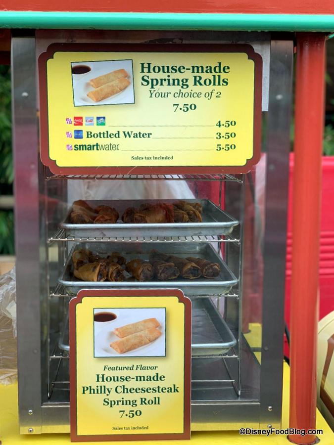 The newest House-made Spring Rolls to hit the scene at Magic Kingdom’s Adventureland Spring Roll Cart are Philly Cheesesteak Spring Rolls!