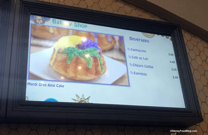 The bakery window is also home to the traditional Mardi Gras specialty, the King Cake, year-round!