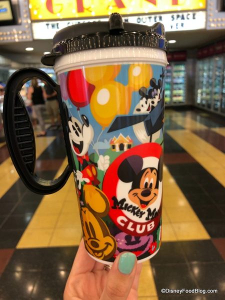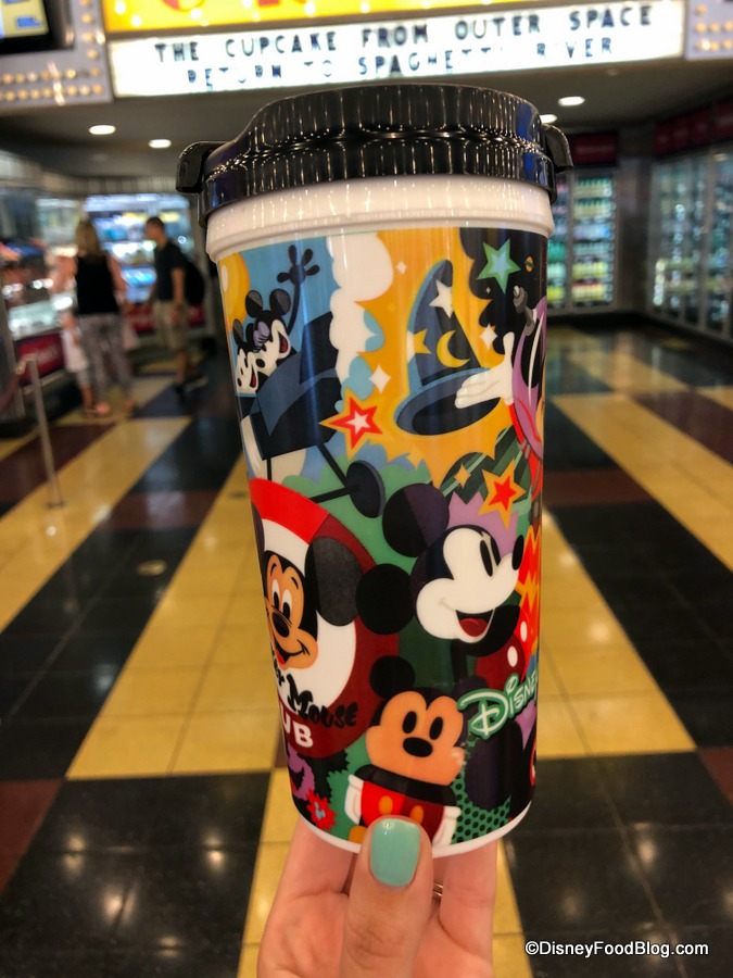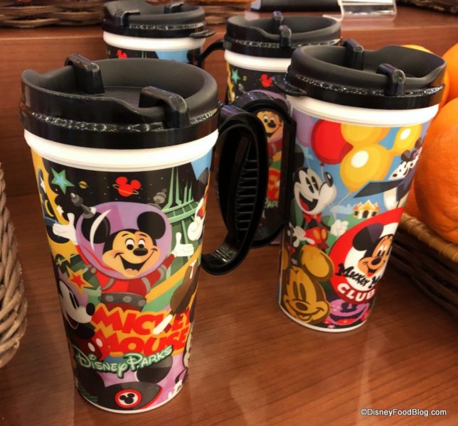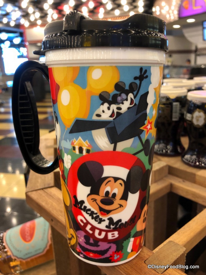 We spotted this one at All Star Movies Resort today in the World Premiere Food Court. However, they had NOT yet arrived at All Star Sports Resort’s End Zone Food Court. In speaking with a manager at All Star Movies, since they had JUST arrived, he could not confirm if the Mickey Mouse mugs were simply a seasonal option or if they would be replacing the current style entirely. So, if you see one at YOUR Disney World Resort, we’d love to hear about where you found it!