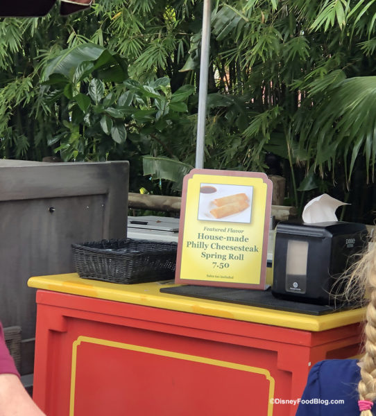 Adventureland’s Spring Roll Cart is home to a new House-made Philly Cheesesteak Spring Roll. Read our review of the Philly Cheesesteak Spring Roll here.