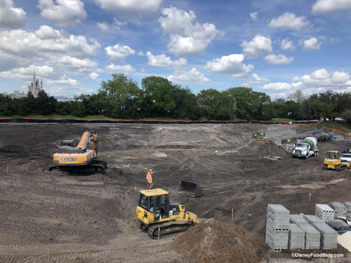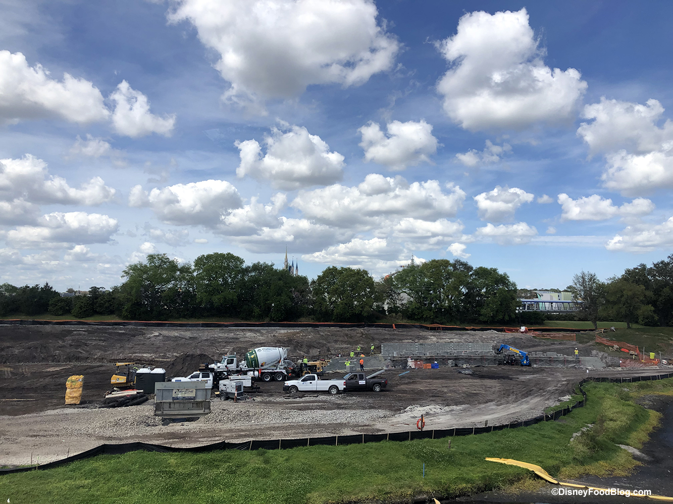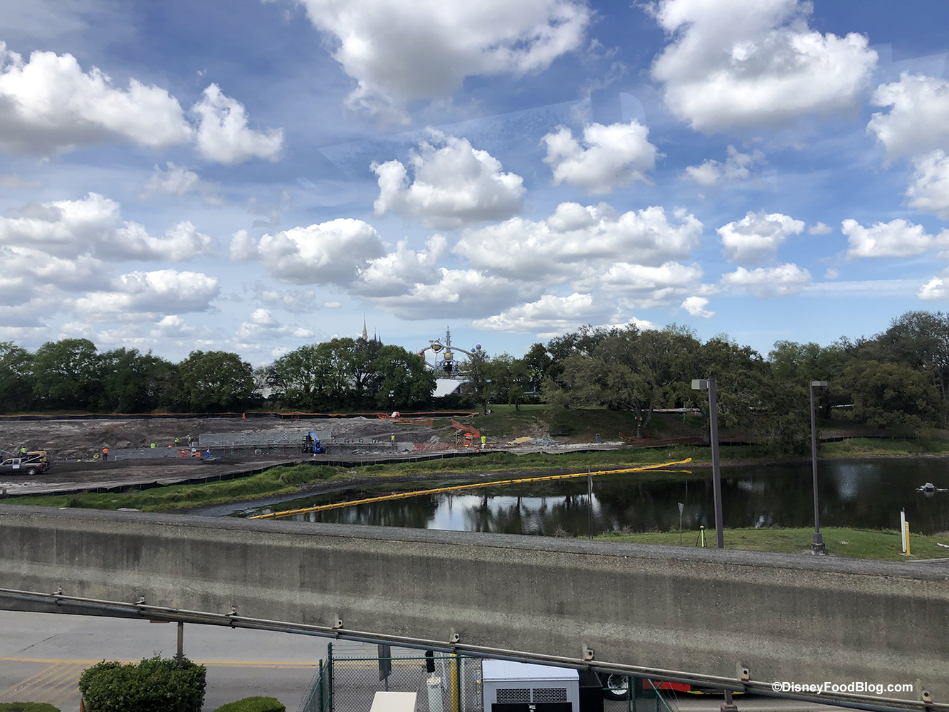 We were able to get more pictures of the construction in progress outside the park at the entrance area. You can get good views into the site from the monorail.
