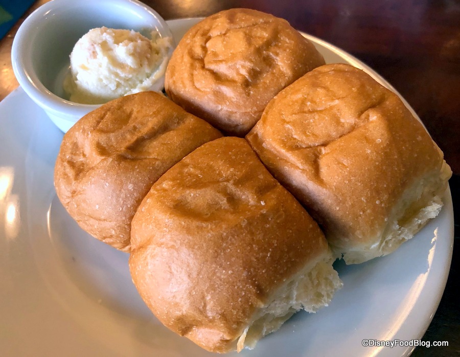 The meal begins with soft dinner rolls and macadamia nut butter. This butter is a popular addition to the breakfast menu at Kona, where it’s served with the Macadamia Nut Pancakes (see our review of the pancakes here!). At dinner, it’s a unique addition to the warm rolls.