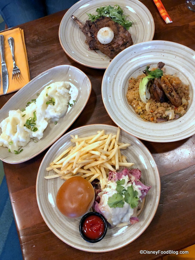 Now the recent menu change has guests wondering whether Kona Cafe should stay on their must-get Advance Dining Reservation list or whether they should head elsewhere. We reviewed lunch shortly after the menu change, and overall, we were impressed by the offerings! In particular, we thought the sushi was a terrific value, and we enjoyed the Hawaiian-Style Reuben sandwich. Even dessert had some pleasant surprises with Key Lime and Tiramisu cups bringing good flavor.