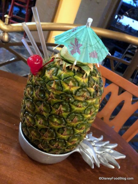 But first: Lapu Lapu. 😉 This refreshing tropical cocktail is a staple of the Polynesian. Diners and visitors to the resort can also order a Lapu Lapu at ‘Ohana and Tambu Lounge. It’s easy to spot this iconic Polynesian Village Resort drink because #pineapple. (FYI: If you order this on the Disney Dining Plan, you’ll receive it in a glass — no pineapple!)