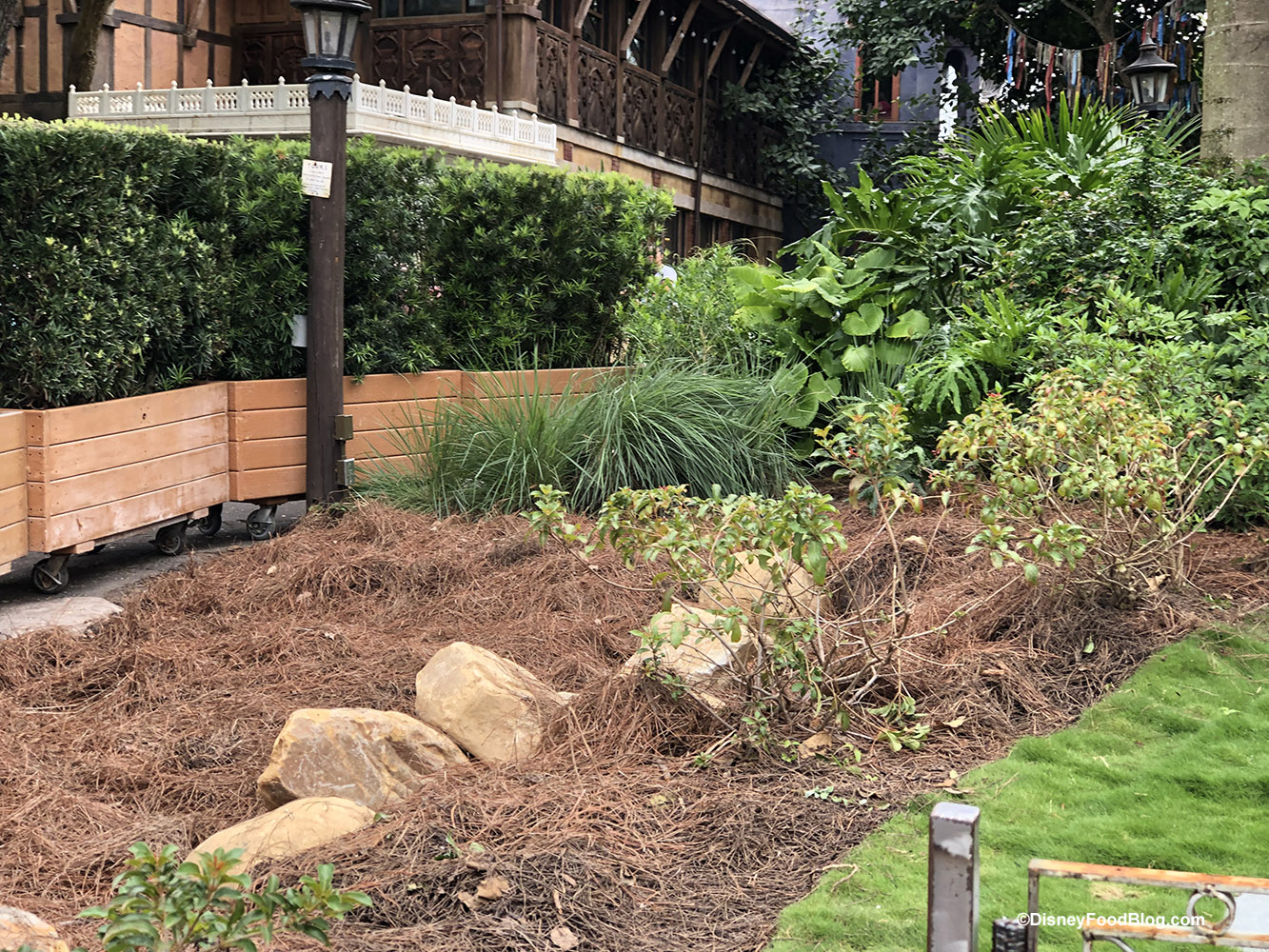 We noticed some “foliage on wheels” near the Upcounty Stage, which is used for the new Bollywood Beats show. The “foliage on wheels” is usually used to obscure views into construction areas in Disney. We are not certain why the foliage is here at this time, but we’ll be sure to update you on our next visit to Animal Kingdom.