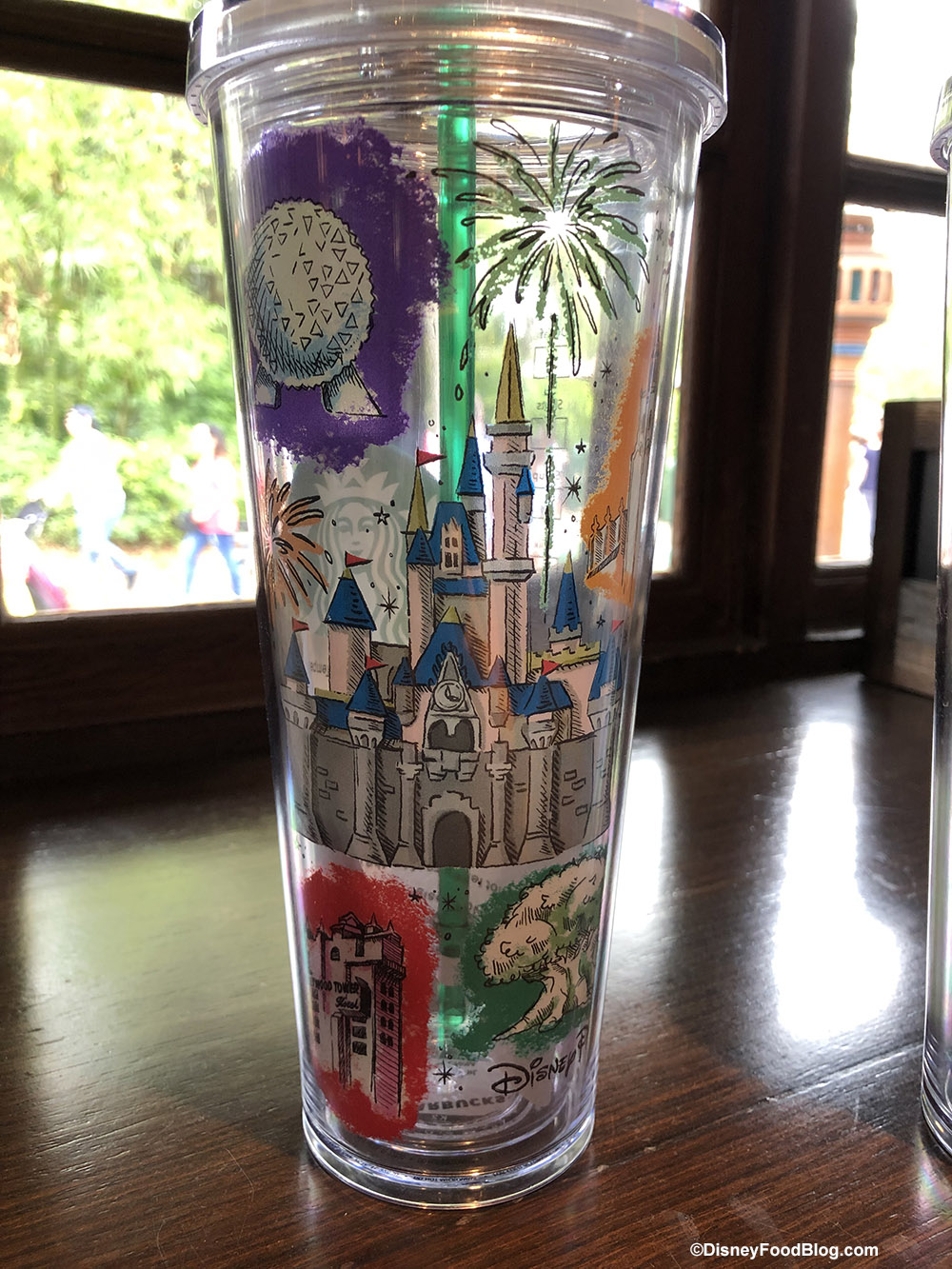 This tumbler is decorated with icons from both Disney World and Disneyland. Read about the new Disney Parks tumbler here!