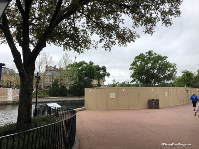 You will find a lot of construction as you near the France pavilion and the International Gateway. Some of the work in the International Gateway area is to add Epcot’s Skyliner Station to the park. We do not know, and no announcements have been made, about the construction after the International Gateway entrance seen below.