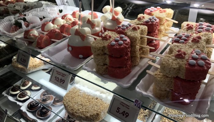Here (and also at Big Top Treats in Storybook Circus) you’ll find that Briar Rose Gold has taken over the confectionery case and now decorates classic Disney treats like Krispy Treats, Cake Pops, and even Chocolate-covered Strawberries.