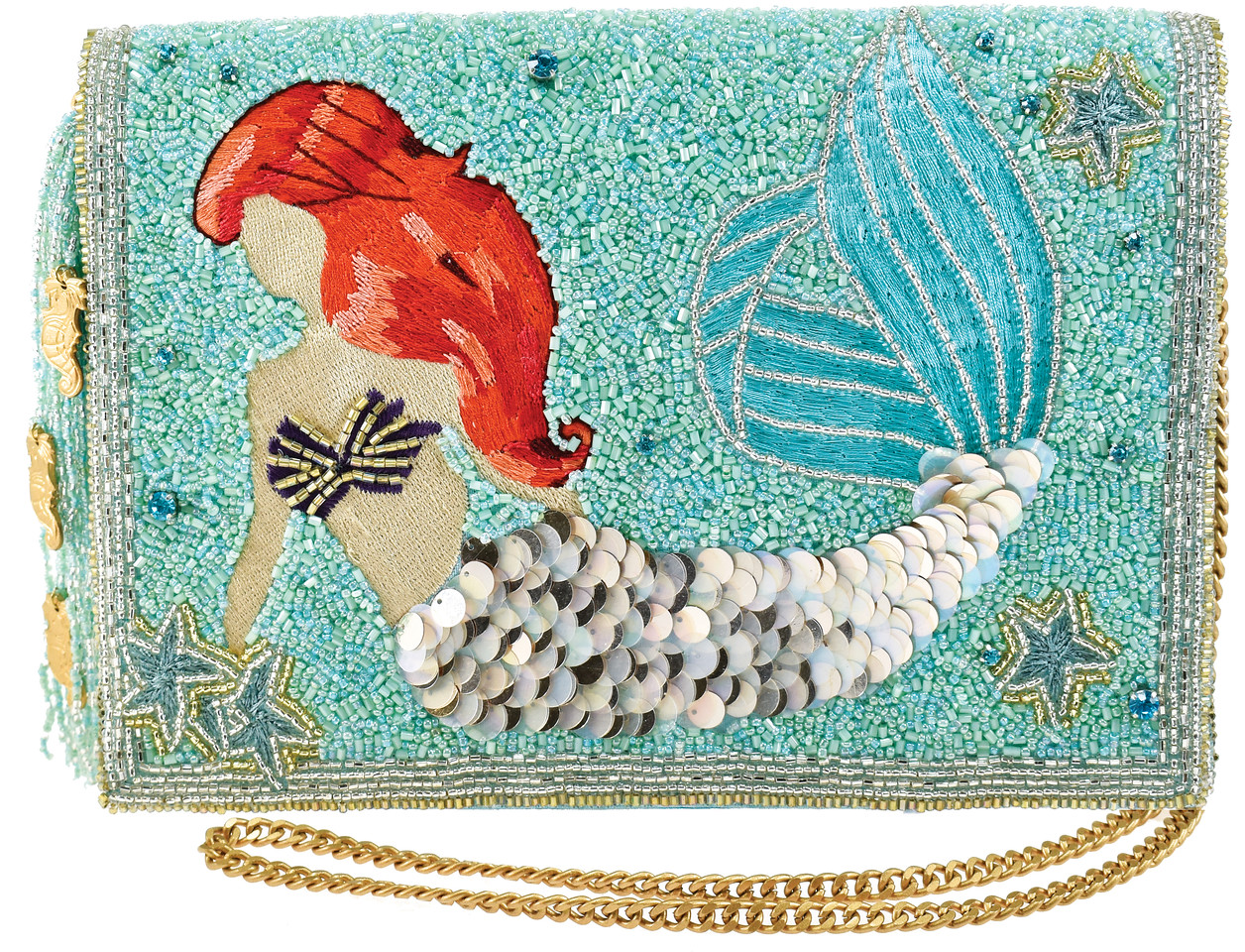 Another gorgeous Little Mermaid-inspired purse is the intricately hand-beaded “Ariel” clutch which can be purchased at Mary Frances for $180 when it also arrives in April.