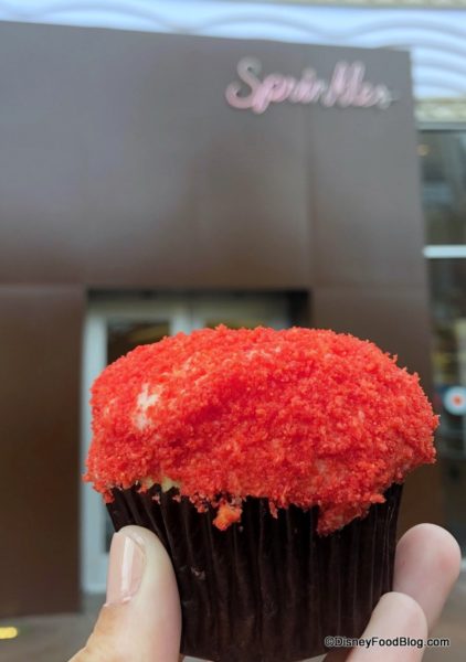 recently announced the return of the Flaming Hot Cheetos Cupcake, and we had to stop in for a taste. (Click here to see the announcement of this savory-sweet cupcake’s return!) But if you think this was a straightforward experience, prepare for a plot twist!