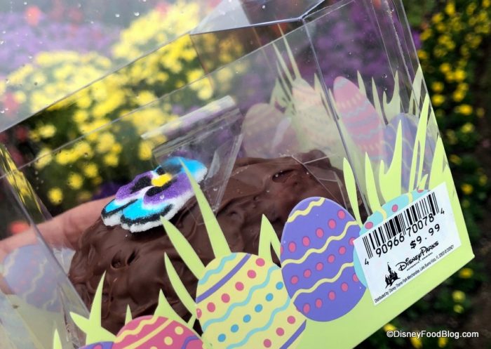 We looooove the Disneyland Easter Eggs, which are packed with fudge and coated in milk chocolate. Packaging has changed a bit over the years. It used to be more botanical, and now it’s simpler and features fewer bunnies. 😉 (Click here to see what the previous boxes looked like!) Happily the price hasn’t changed much over the past few years; you can still get your egg for under $10!