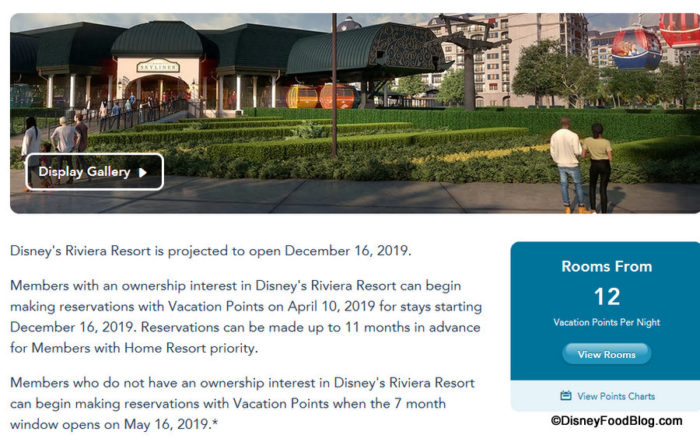 “Members with an ownership interest in Disney’s Riviera Resort can begin making reservations with Vacation Points on April 10, 2019 for stays starting December 16, 2019. Reservations can be made up to 11 months in advance for Members with Home Resort priority.” (Note that, starting today, existing members may purchase ownership at Disney’s Riviera Resort, while sales to the general public starting April 15th.)