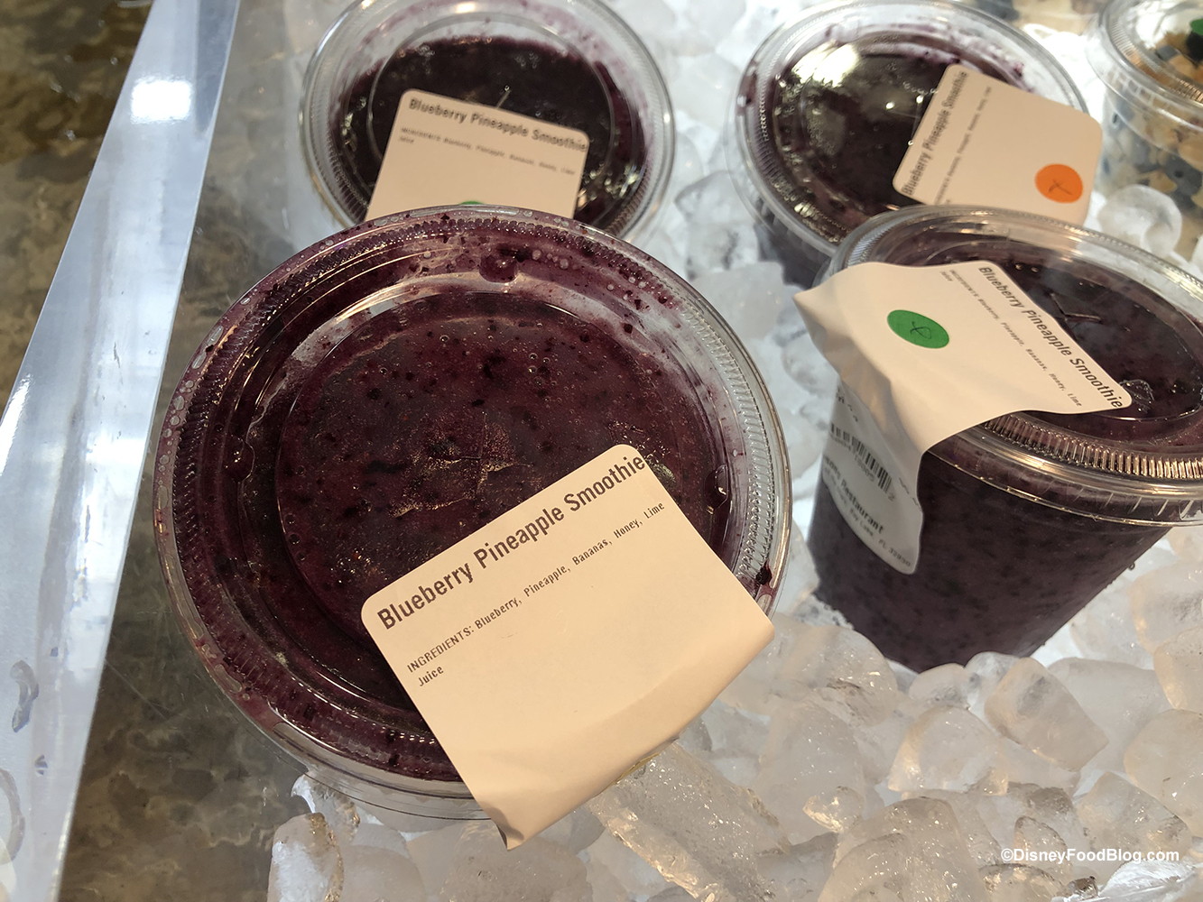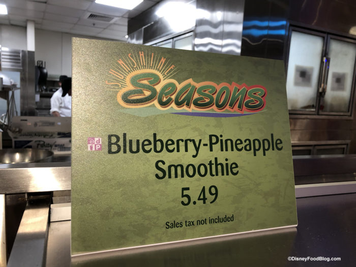 And downstairs in Sunshine Seasons we found a new smoothie — will you be trying the Blueberry Pineapple smoothie? (This may be taking the place of the Strawberry Banana smoothie that is typically available here.)