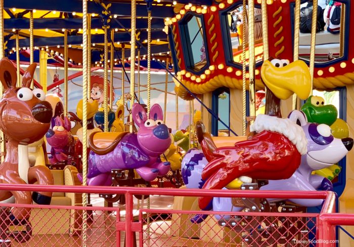 Replacing King Triton’s Carousel of the Sea, Jessie’s Critter Carousel is still the same general situation. Kiddos (and adults alike!) will still ride in circles on a relatively tame carousel. But now everyone gets to saddle up on animals you’d find in Woody’s Roundup! Look for snakes, armadillos, turtles, bunnies, buzzards, and more!