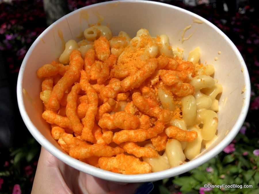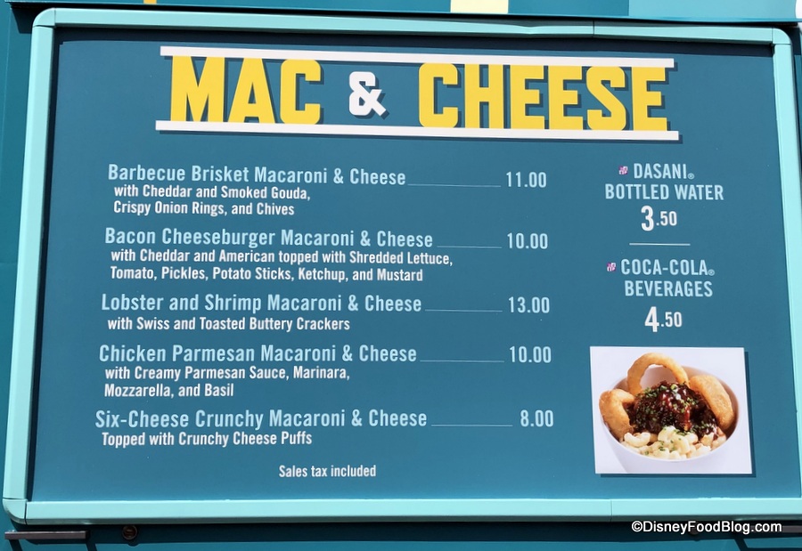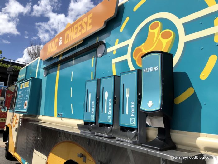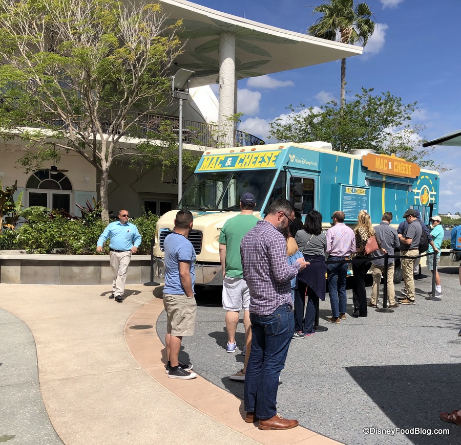 You’ll find — for now, in any case — the Mac and Cheese Truck in Exposition Park — the area dedicated to the Disney Food Trucks, right in between Bongos Cuban Cafe and the West Side Starbucks.