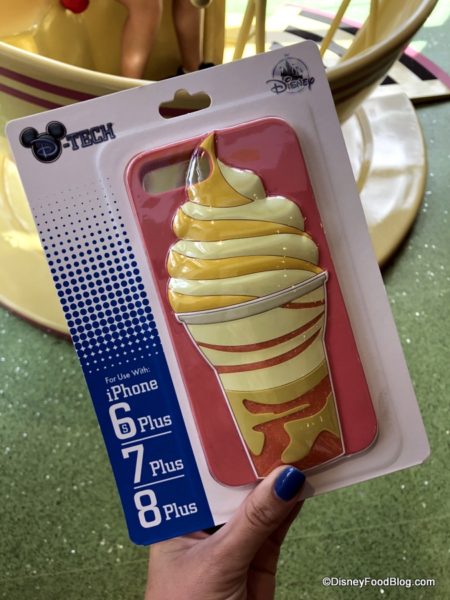 Indeed that’s a Dole Whip Float iPhone case! The phone case features the iconic snack in 3-d, with swirls in shades of yellow and orange.