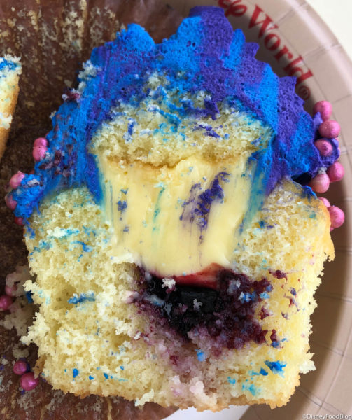 We were told that the cupcake was banana flavored when we first got it. OK, cool. I like a good banana cupcake. But that crazy purple frosting was so…off-putting. This is either a purple potion cupcake or a Briar Rose Gold cupcake…or both? We have no idea. ;-D Maybe it’s a twofer!