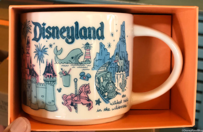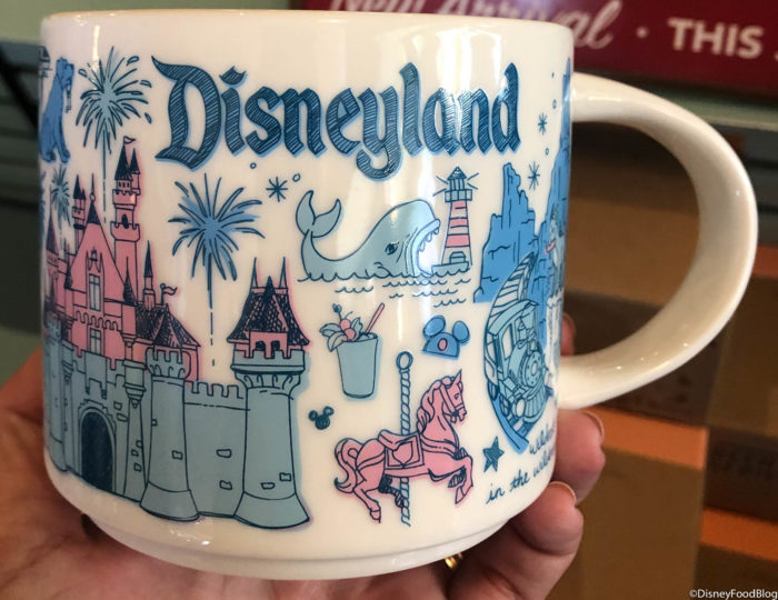 The new mugs are a part of the “Pin Drop” collection, and this one features precious drawings of Disneyland.
