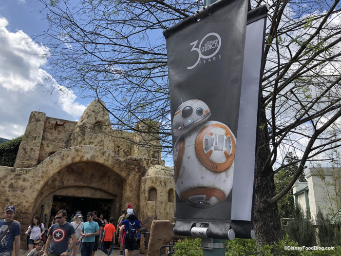 This year Hollywood Studios is celebrating it’s 30th Anniversary and we spotted celebration banners displayed throughout the park and the walkway to the entrance from the bus stations.