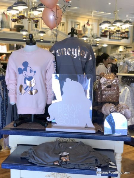 At Disney Clothiers on Main Street, U.S.A., guests can get fully outfitted in Briar Rose Gold merchandise from head to hip!