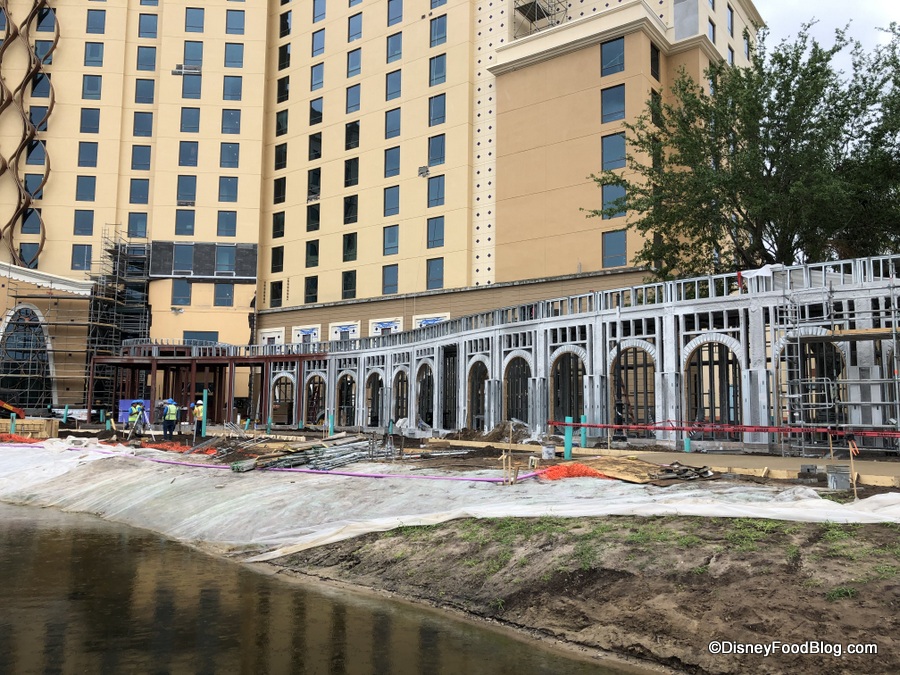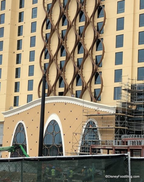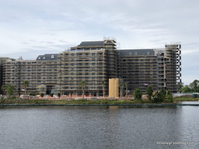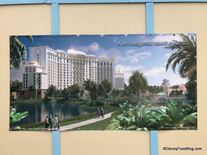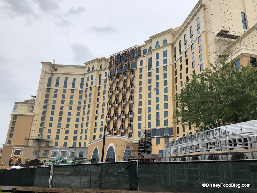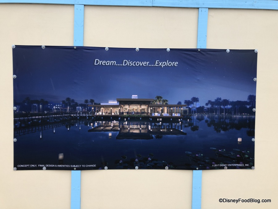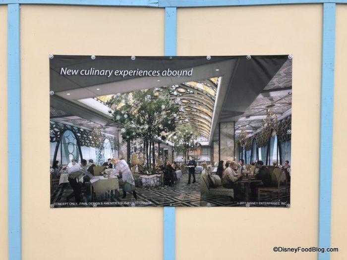 Construction walls remain up, along with concept art that gives us a peek at the finished tower along with the new dining options coming to the resort.