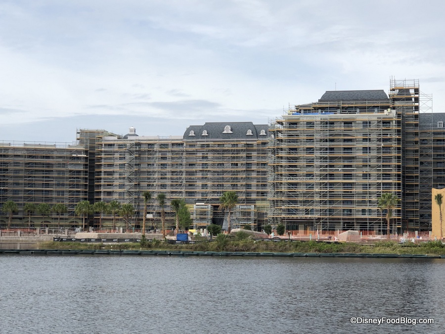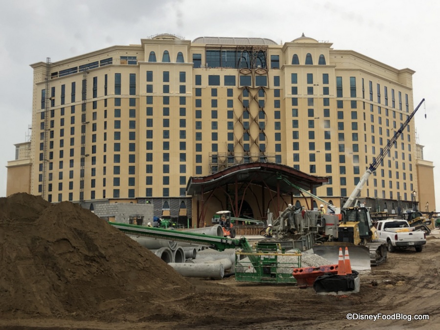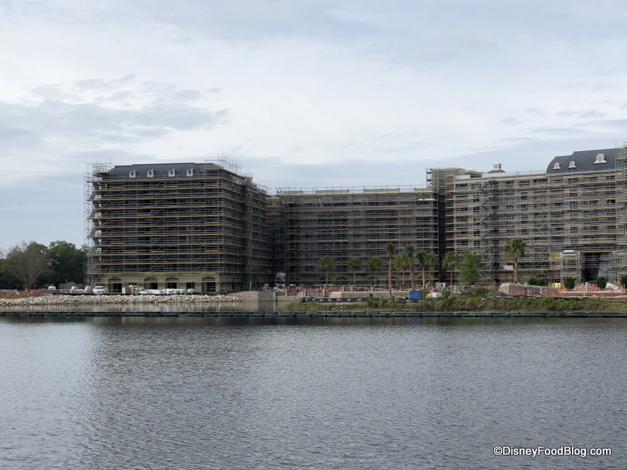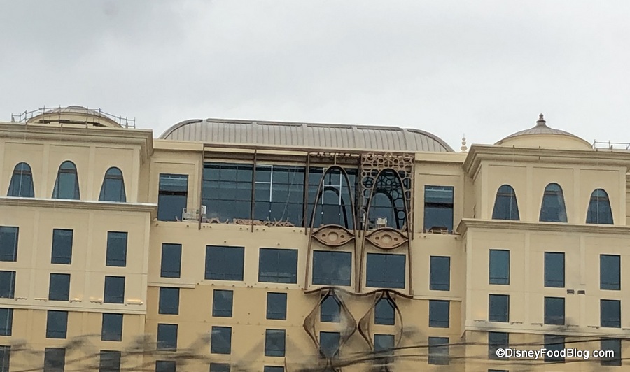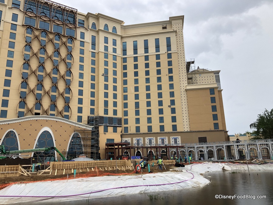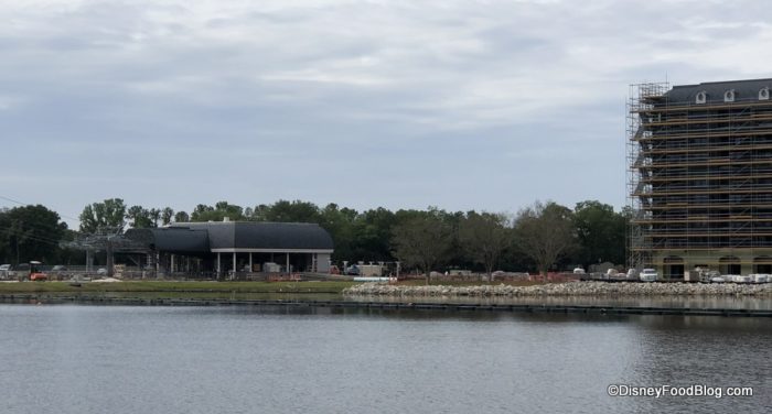 Construction walls remain up, along with concept art that gives us a peek at the finished tower along with the new dining options coming to the resort.