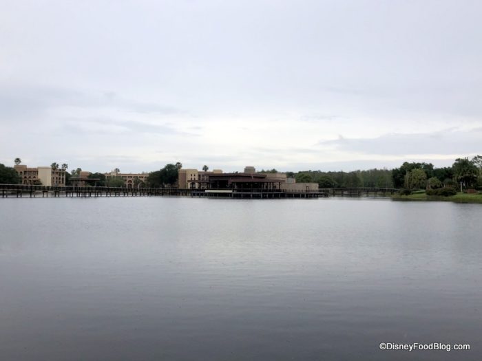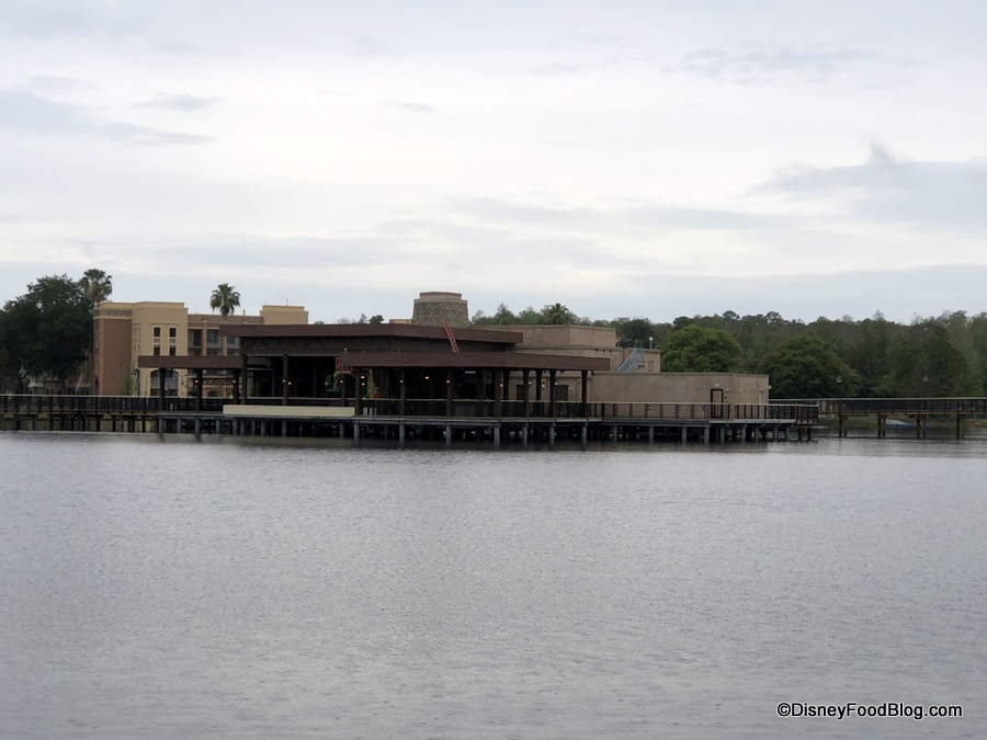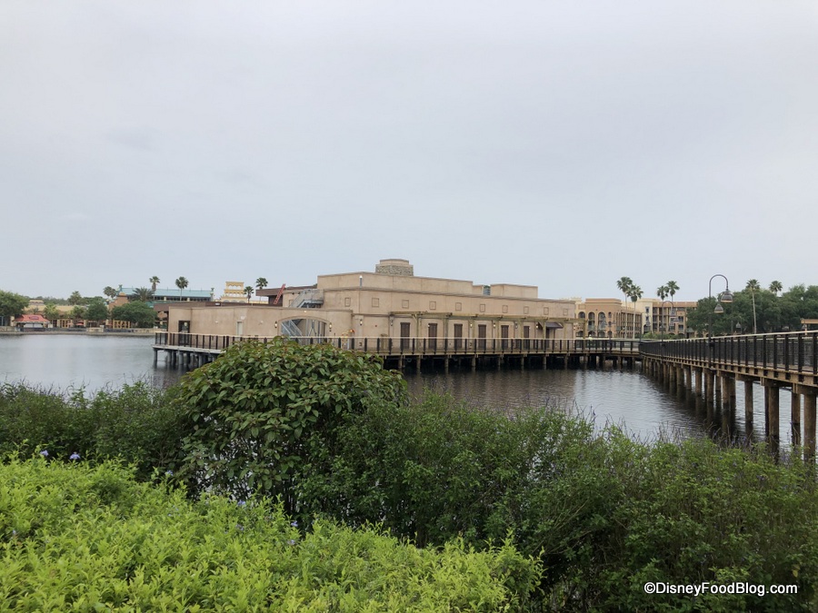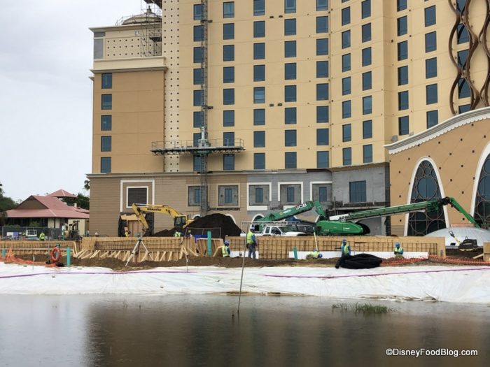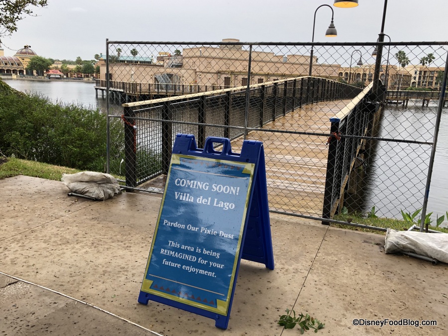 Other construction at the resort includes Villa del Lago/Three Bridges Bar & Grill. Honestly, we’re not sure what’s going on with the name here. Disney changed the original moniker — Villa del Lago — to Three Bridges Bar & Grill a while back, but signage on our visit still said Villa del Lago. Could be old signage, so we’re keeping an eye on this!