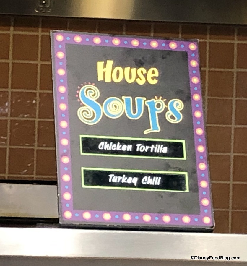 Specialty soups (if you’re still hungry after a cupcake and a cake) are Chicken Tortilla and Turkey Chili.