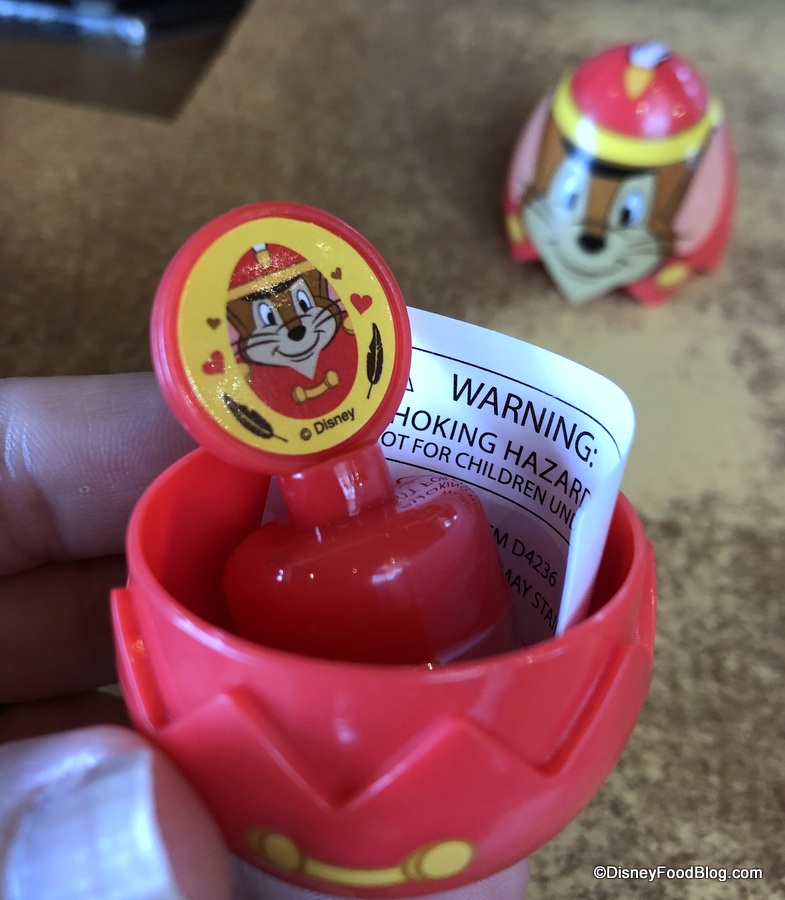 For instance, you’ll find a sticker in the Maleficent Egg, and a stamp in the Timothy Mouse egg.